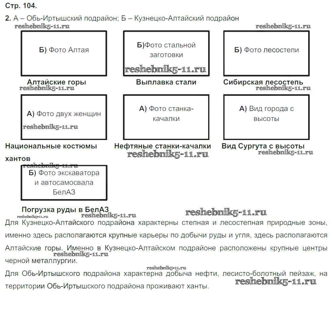 Готовая домашняя работа с ответами по Географии за 9 класс Ходова, Ольховая Тетрадь-тренажер Сферы Просвещение 2016 ФГОС - Глава 2. Районы России стр.104