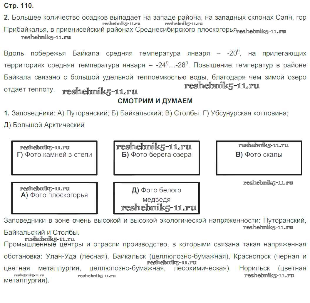 Готовая домашняя работа с ответами по Географии за 9 класс Ходова, Ольховая Тетрадь-тренажер Сферы Просвещение 2016 ФГОС - Глава 2. Районы России стр.110
