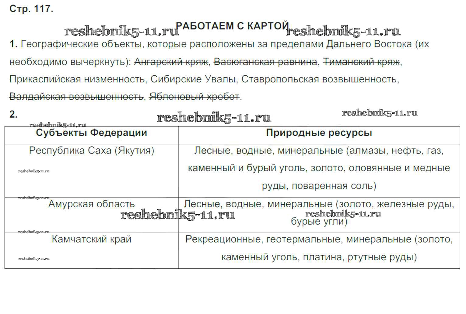 Готовая домашняя работа с ответами по Географии за 9 класс Ходова, Ольховая Тетрадь-тренажер Сферы Просвещение 2016 ФГОС - Глава 2. Районы России стр.117