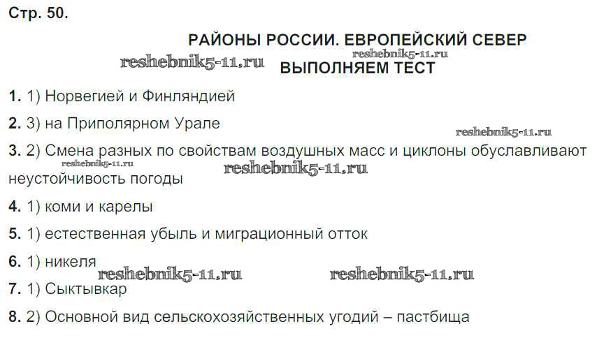 Готовая домашняя работа с ответами по Географии за 9 класс Ходова, Ольховая Тетрадь-тренажер Сферы Просвещение 2016 ФГОС - Глава 2. Районы России стр.50