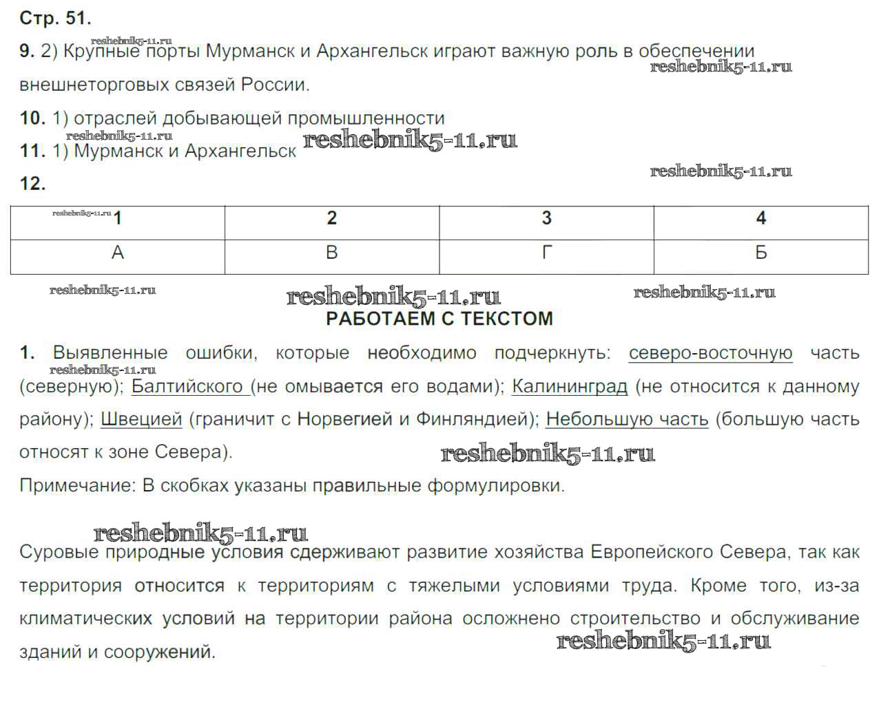 Готовая домашняя работа с ответами по Географии за 9 класс Ходова, Ольховая Тетрадь-тренажер Сферы Просвещение 2016 ФГОС - Глава 2. Районы России стр.51