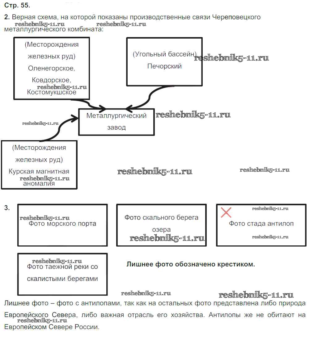 Готовая домашняя работа с ответами по Географии за 9 класс Ходова, Ольховая Тетрадь-тренажер Сферы Просвещение 2016 ФГОС - Глава 2. Районы России стр.55