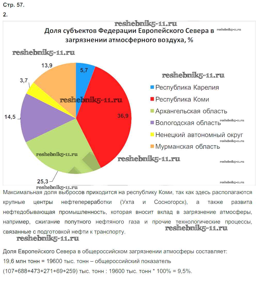 Готовая домашняя работа с ответами по Географии за 9 класс Ходова, Ольховая Тетрадь-тренажер Сферы Просвещение 2016 ФГОС - Глава 2. Районы России стр.57