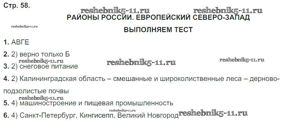 Готовая домашняя работа с ответами по Географии за 9 класс Ходова, Ольховая Тетрадь-тренажер Сферы Просвещение 2016 ФГОС - Глава 2. Районы России стр.58