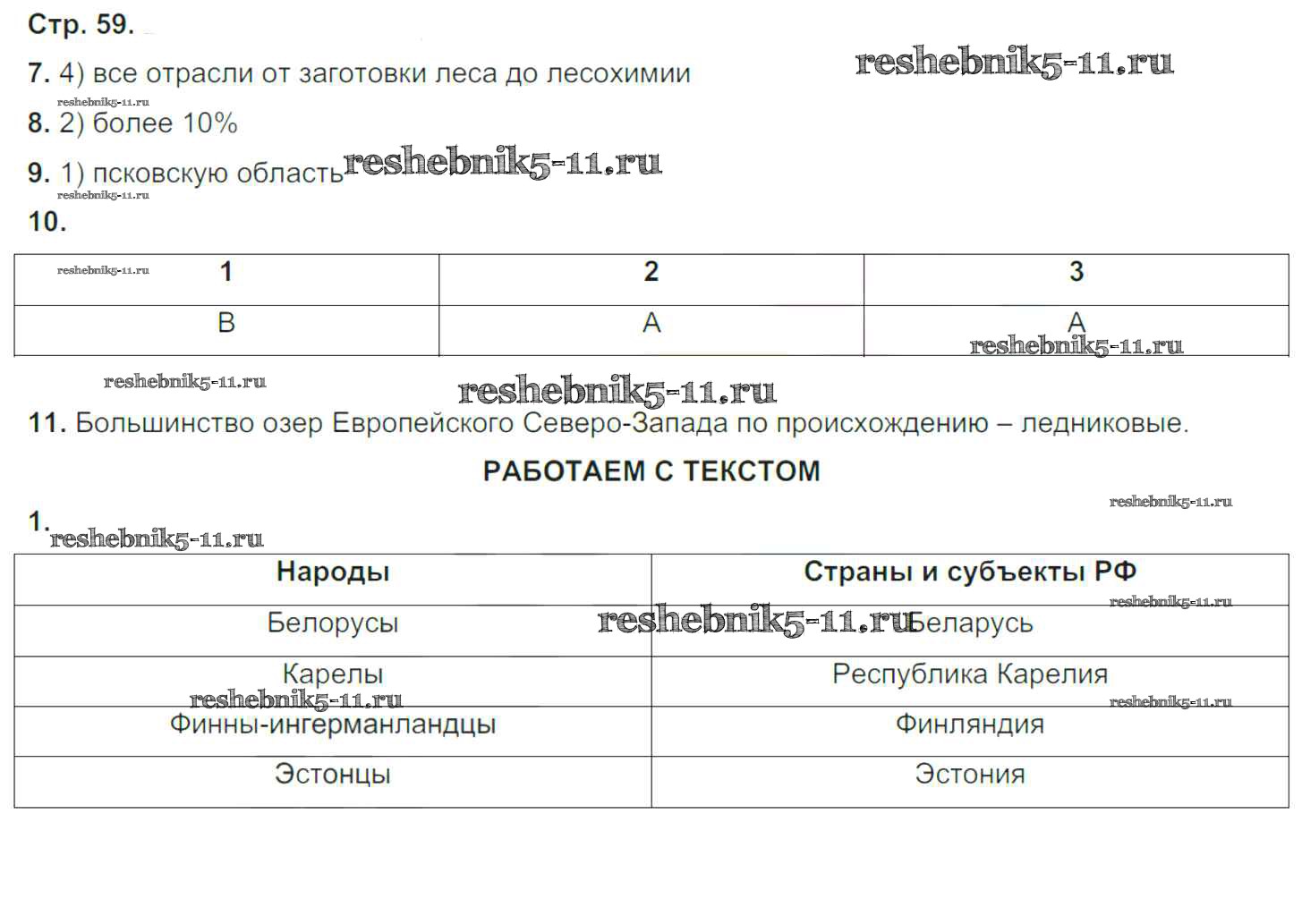 Готовая домашняя работа с ответами по Географии за 9 класс Ходова, Ольховая Тетрадь-тренажер Сферы Просвещение 2016 ФГОС - Глава 2. Районы России стр.59