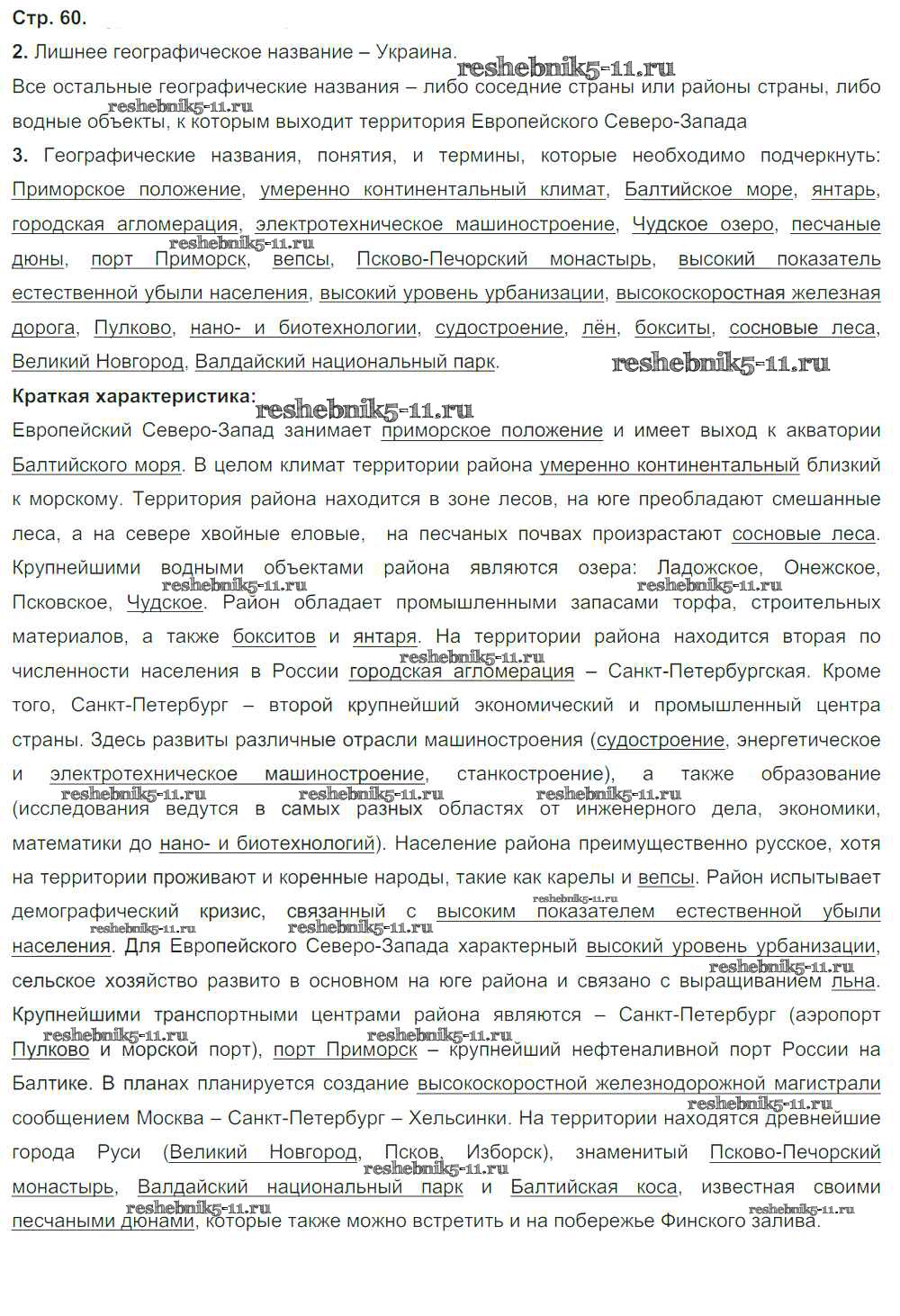 Готовая домашняя работа с ответами по Географии за 9 класс Ходова, Ольховая Тетрадь-тренажер Сферы Просвещение 2016 ФГОС - Глава 2. Районы России стр.60