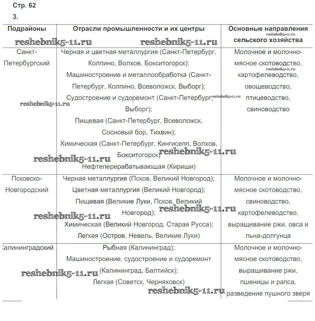 Готовая домашняя работа с ответами по Географии за 9 класс Ходова, Ольховая Тетрадь-тренажер Сферы Просвещение 2016 ФГОС - Глава 2. Районы России стр.62