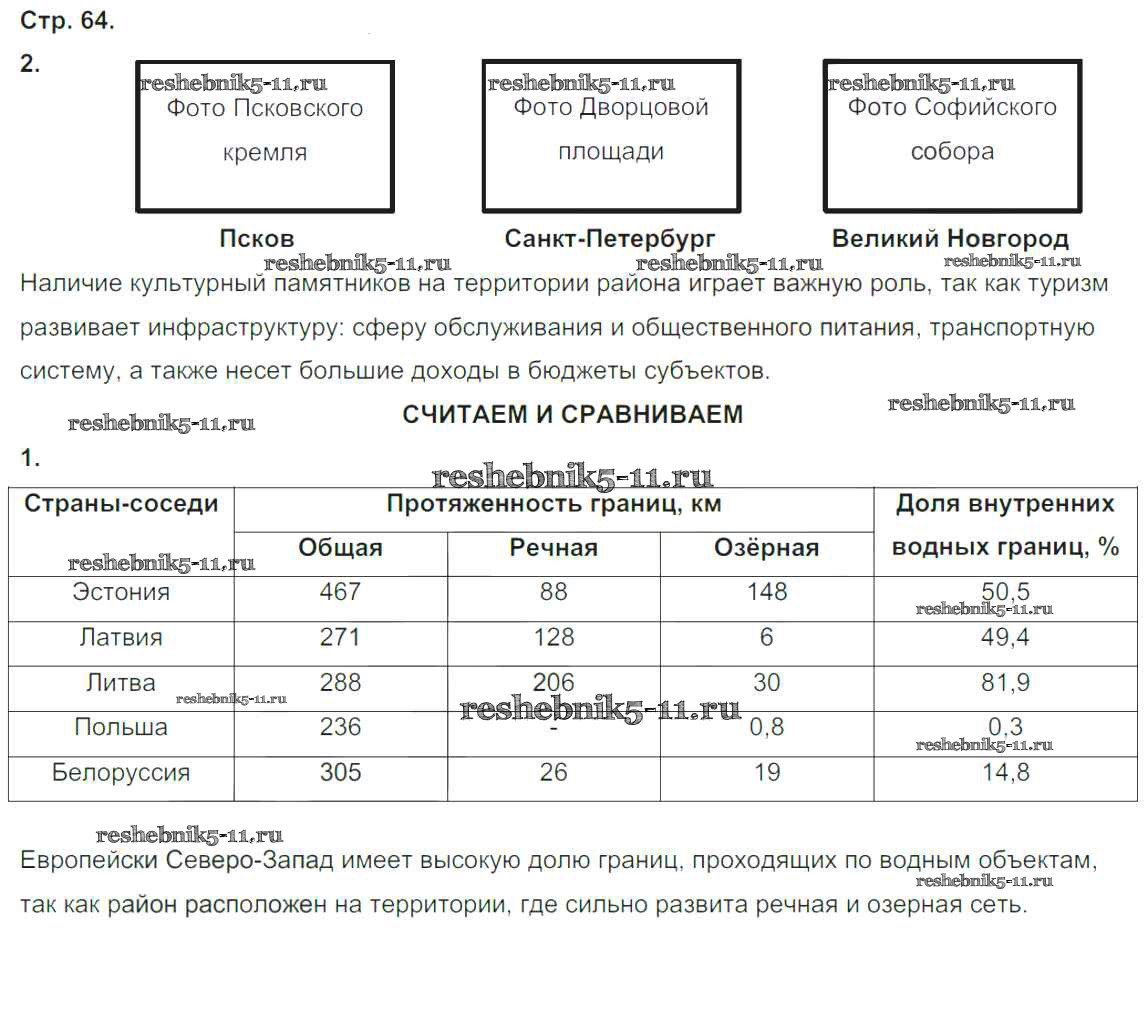 Готовая домашняя работа с ответами по Географии за 9 класс Ходова, Ольховая Тетрадь-тренажер Сферы Просвещение 2016 ФГОС - Глава 2. Районы России стр.64