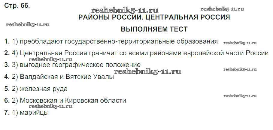 Готовая домашняя работа с ответами по Географии за 9 класс Ходова, Ольховая Тетрадь-тренажер Сферы Просвещение 2016 ФГОС - Глава 2. Районы России стр.66