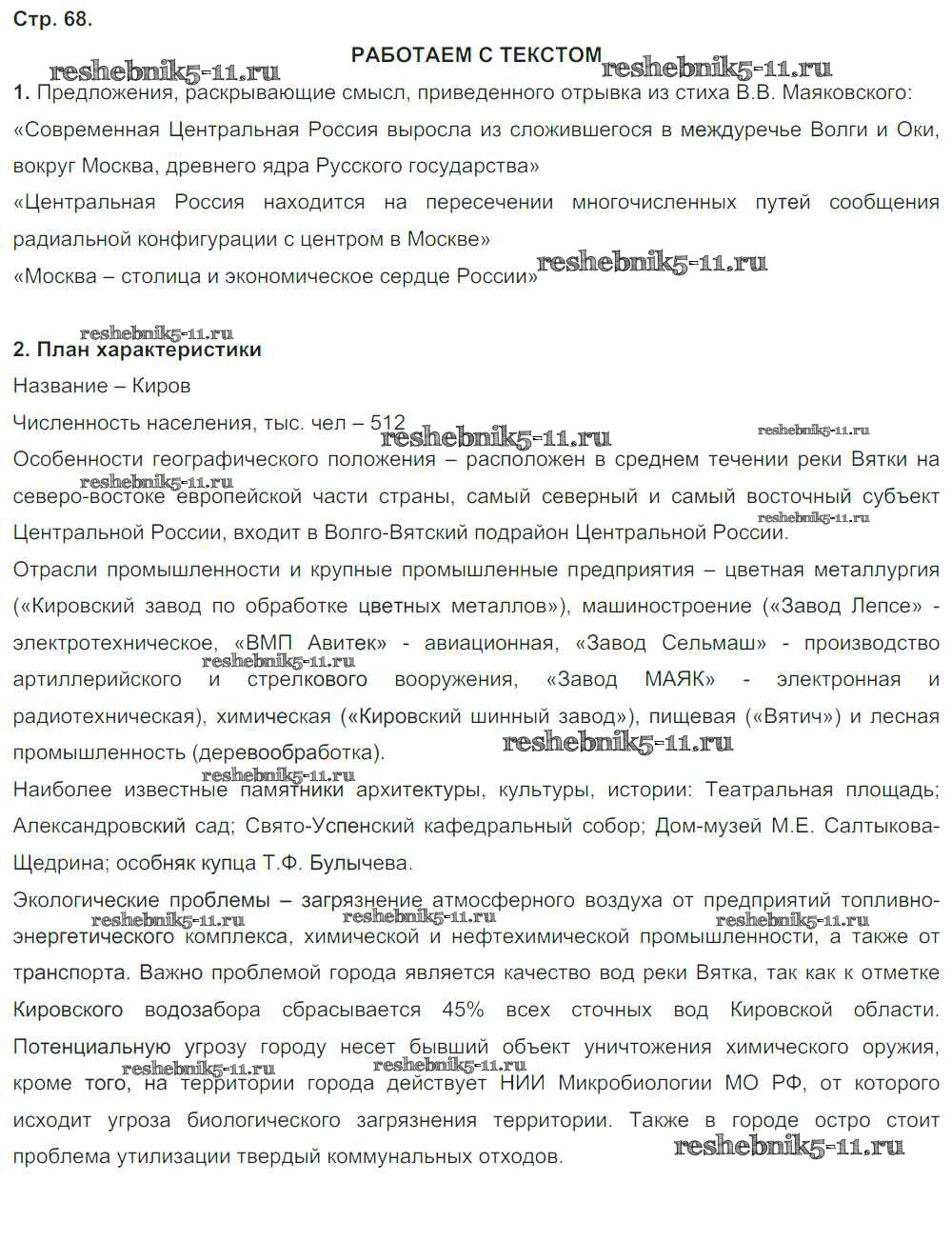 Готовая домашняя работа с ответами по Географии за 9 класс Ходова, Ольховая Тетрадь-тренажер Сферы Просвещение 2016 ФГОС - Глава 2. Районы России стр.68