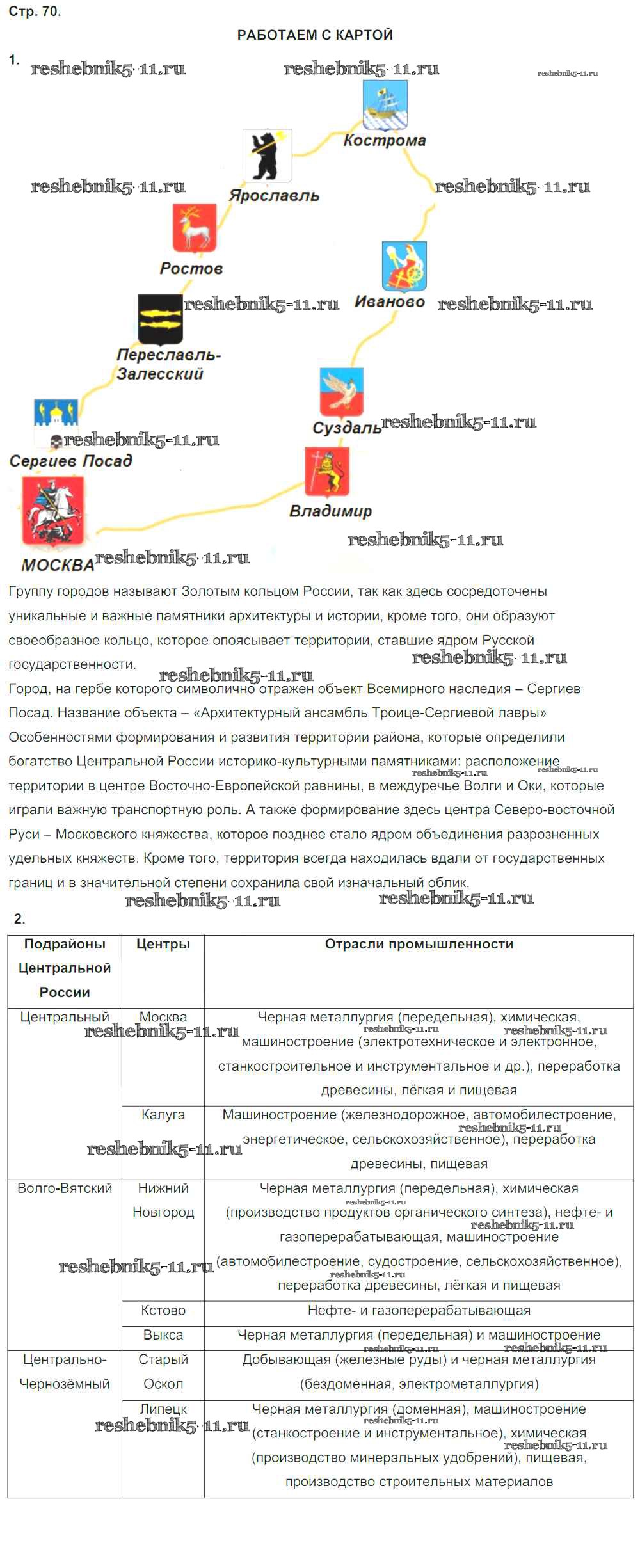 Готовая домашняя работа с ответами по Географии за 9 класс Ходова, Ольховая Тетрадь-тренажер Сферы Просвещение 2016 ФГОС - Глава 2. Районы России стр.70