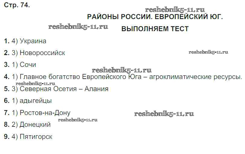Готовая домашняя работа с ответами по Географии за 9 класс Ходова, Ольховая Тетрадь-тренажер Сферы Просвещение 2016 ФГОС - Глава 2. Районы России стр.74
