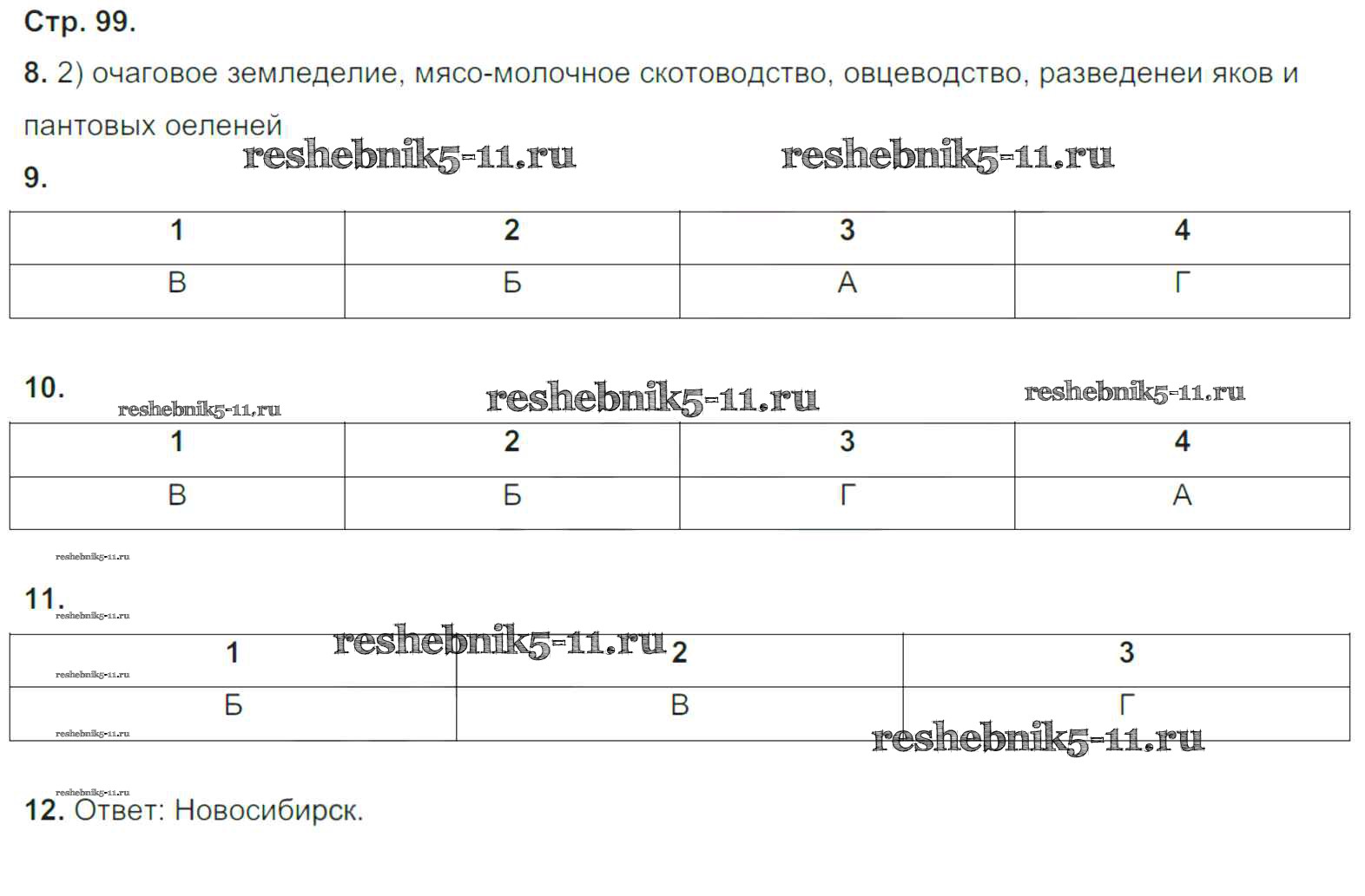 Готовая домашняя работа с ответами по Географии за 9 класс Ходова, Ольховая Тетрадь-тренажер Сферы Просвещение 2016 ФГОС - Глава 2. Районы России стр.99