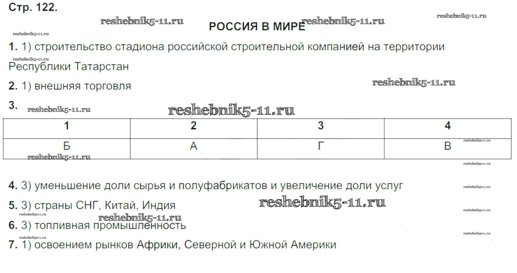 Готовая домашняя работа с ответами по Географии за 9 класс Ходова, Ольховая Тетрадь-тренажер Сферы Просвещение 2016 ФГОС - Глава 3. Россия в мире стр.122