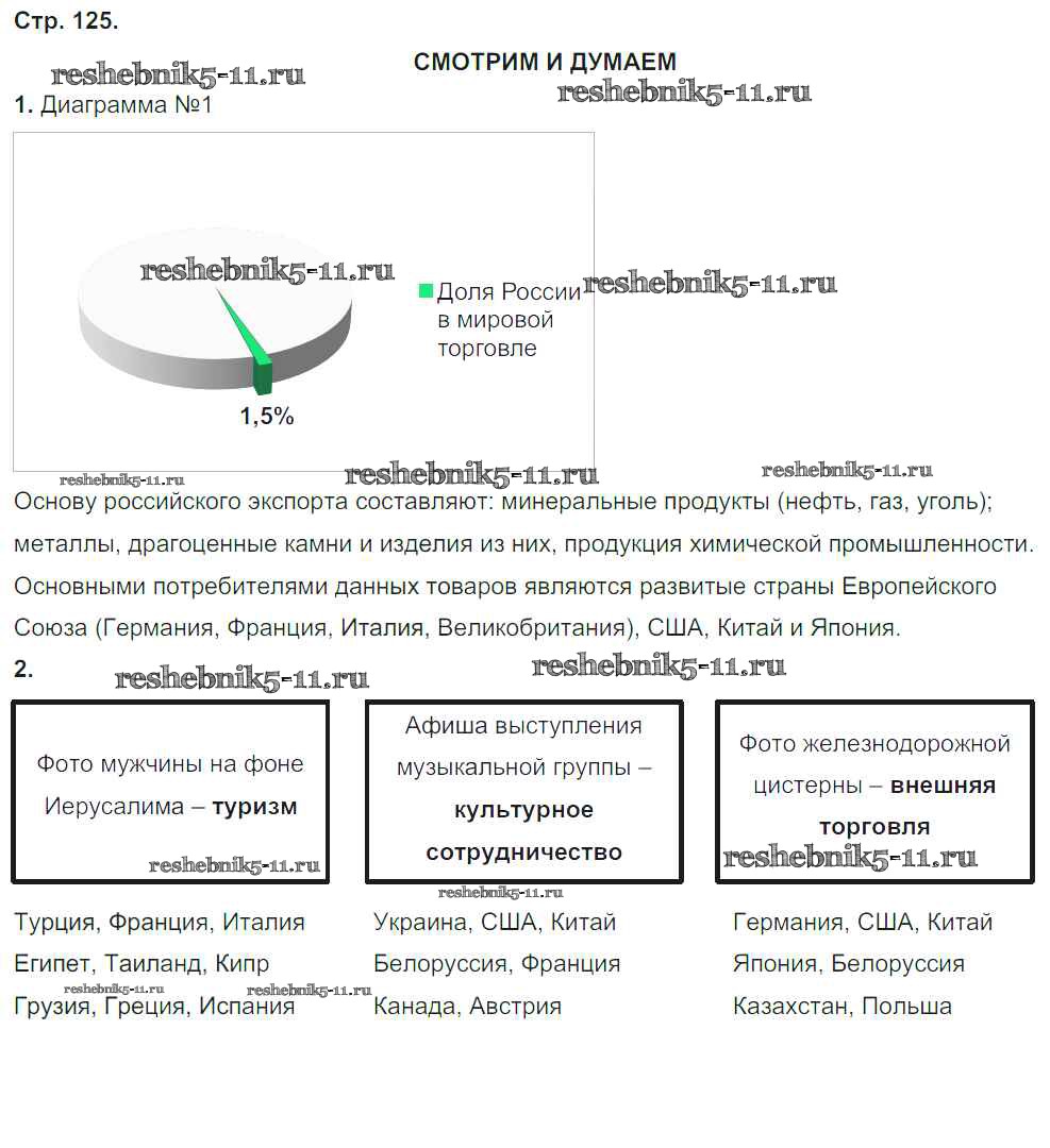 Готовая домашняя работа с ответами по Географии за 9 класс Ходова, Ольховая Тетрадь-тренажер Сферы Просвещение 2016 ФГОС - Глава 3. Россия в мире стр.125
