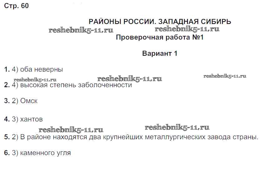 Решебник / Районы России. Западная Сибирь / пр-1 / вариант-1