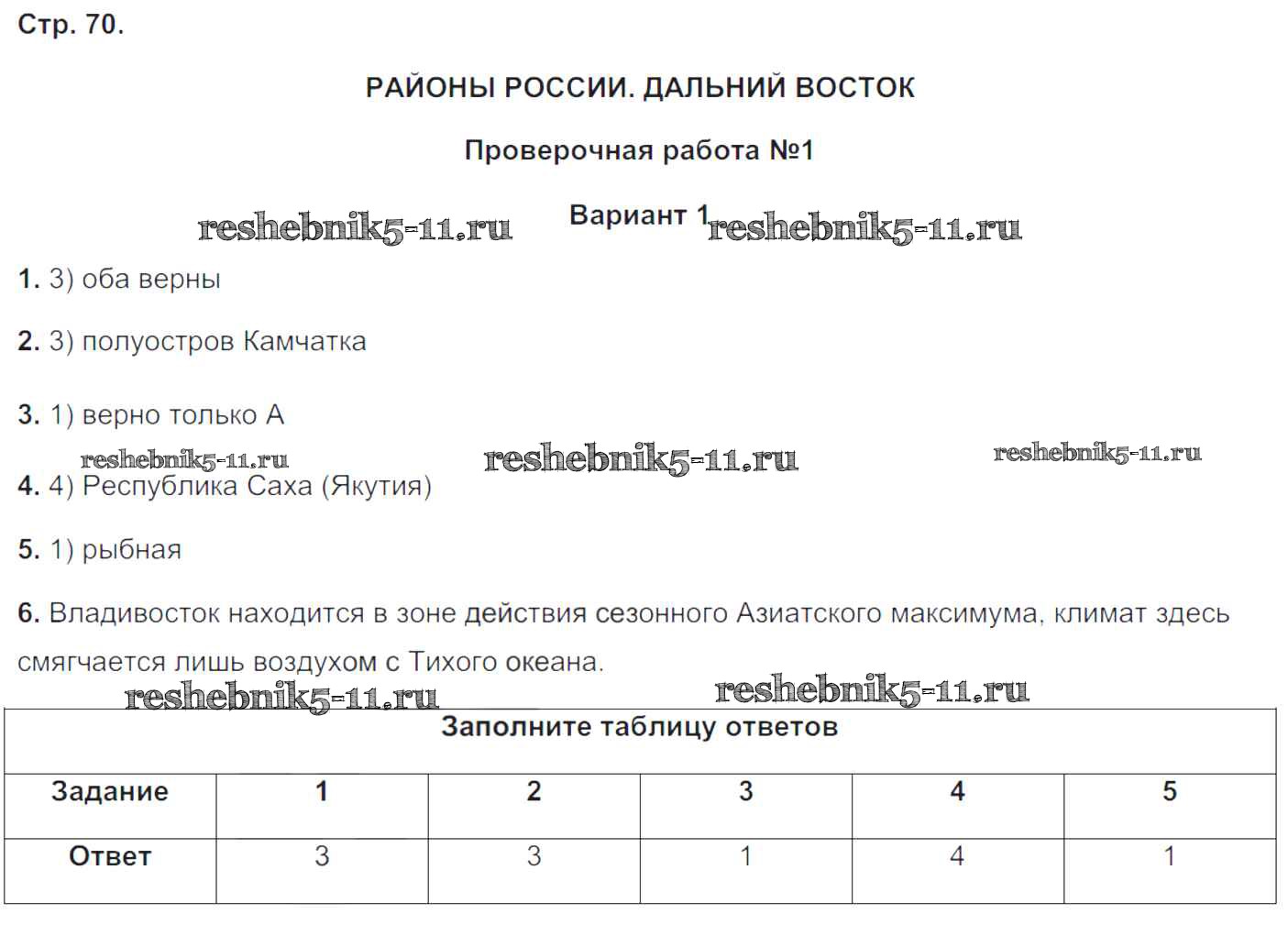 Решебник / Районы России. Дальний Восток / пр-1 / вариант-1