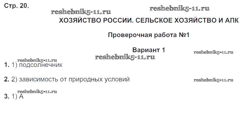 Решебник / Хозяйство России. Сельское хозяйство / пр-1 / вариант-1