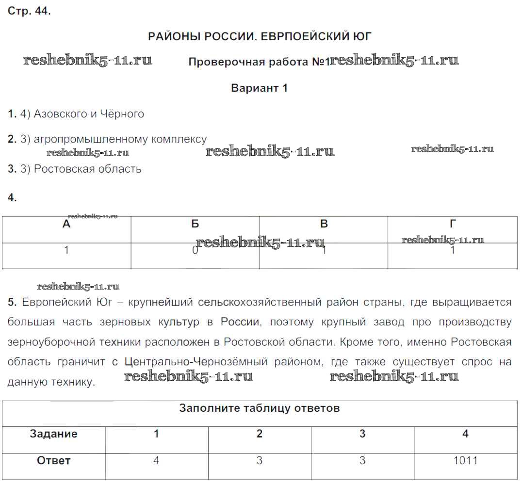 Решебник / Районы России. Европейский Юг / пр-1 / вариант-1