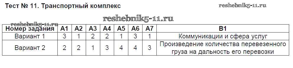 Готовая домашняя работа с ответами по Географии за 9 класс Жижина Контрольно-измерительные материалы (КИМ) ВАКО 2017 ФГОС - Тесты Тест №11. Транспортный комплекс