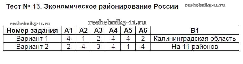 Готовая домашняя работа с ответами по Географии за 9 класс Жижина Контрольно-измерительные материалы (КИМ) ВАКО 2017 ФГОС - Тесты Тест №13. Экономическое районирование России