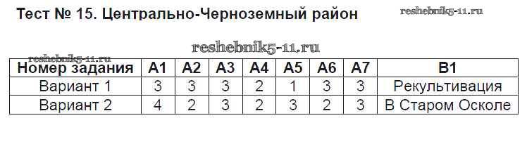 Решебник / тест / тест №15. Центрально-Черноземный район