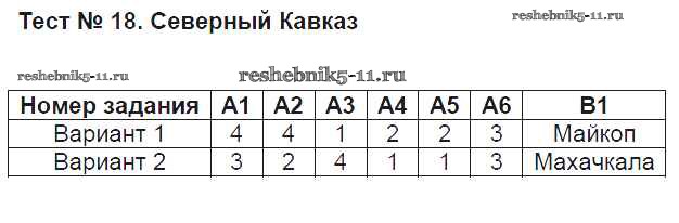 Готовая домашняя работа с ответами по Географии за 9 класс Жижина Контрольно-измерительные материалы (КИМ) ВАКО 2017 ФГОС - Тесты Тест №18. Северный Кавказ