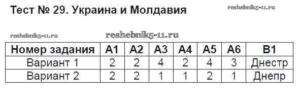 Готовая домашняя работа с ответами по Географии за 9 класс Жижина Контрольно-измерительные материалы (КИМ) ВАКО 2017 ФГОС - Тесты Тест №29. Украина и Молдавия