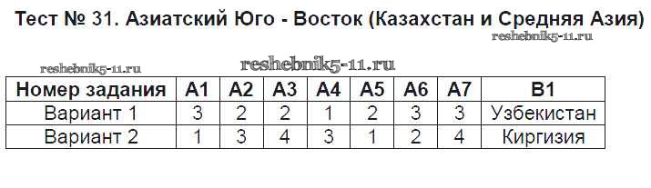 Готовая домашняя работа с ответами по Географии за 9 класс Жижина Контрольно-измерительные материалы (КИМ) ВАКО 2017 ФГОС - Тесты Тест №31. Азиатский Юго - Восток (Казахстан и Средняя Азия)