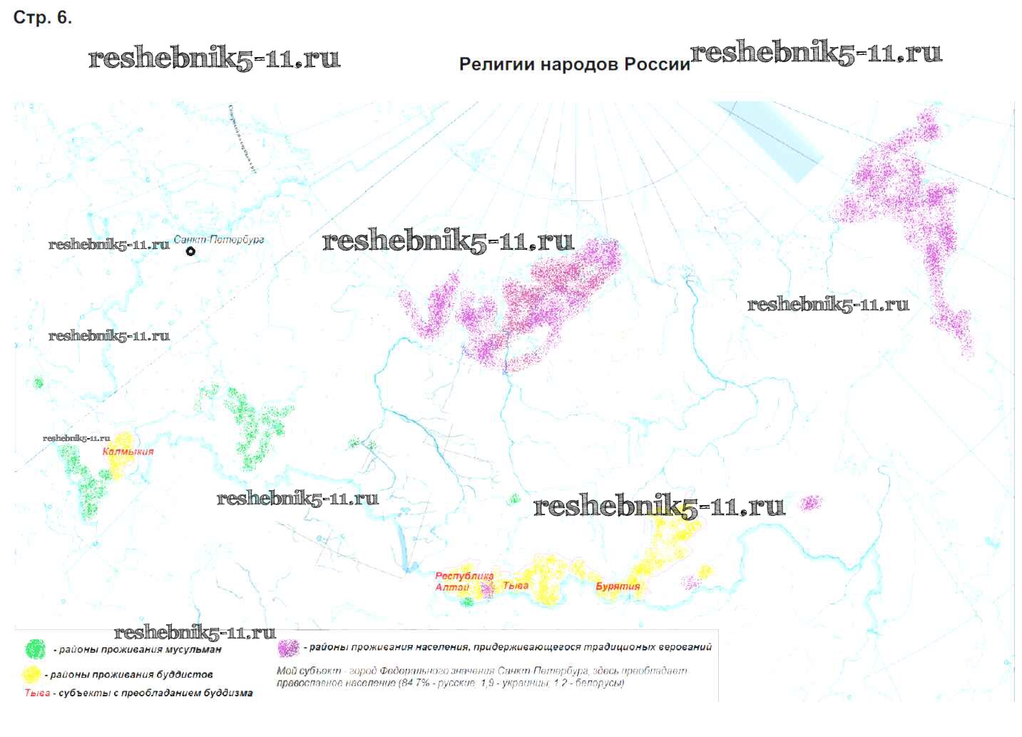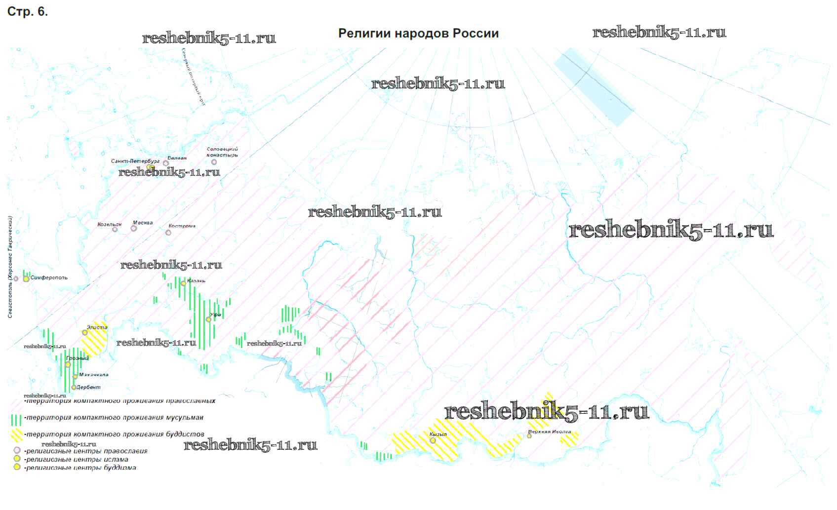 Готовая домашняя работа с ответами по Географии за 9 класс Приваловский Контурные карты Дрофа 2020 ФГОС - Страницы стр.6. Религии народов России