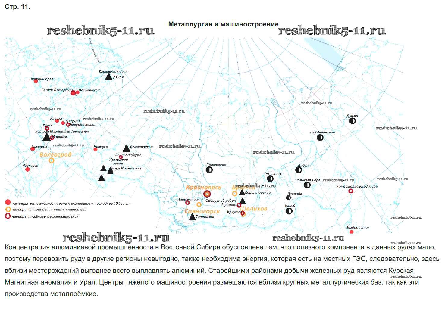 Готовая домашняя работа с ответами по Географии за 9 класс Приваловский Контурные карты Дрофа 2020 ФГОС - Страницы стр.11. Металлургия и машиностроение-2