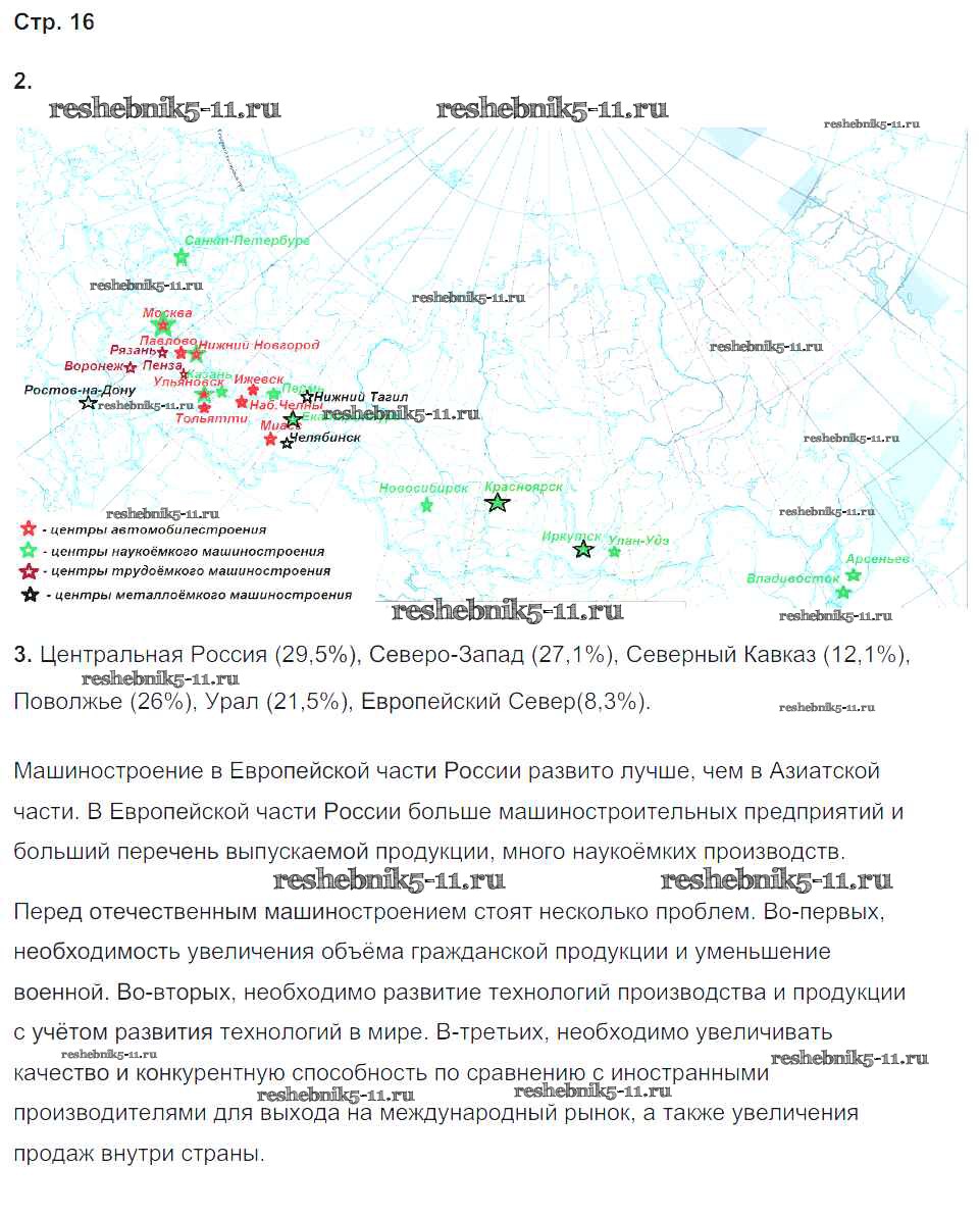 Готовая домашняя работа с ответами по Географии за 9 класс Баринова, Суслов Рабочая тетрадь с контурными картами УМК Экзамен 2019 ФГОС - Страницы тетради 16