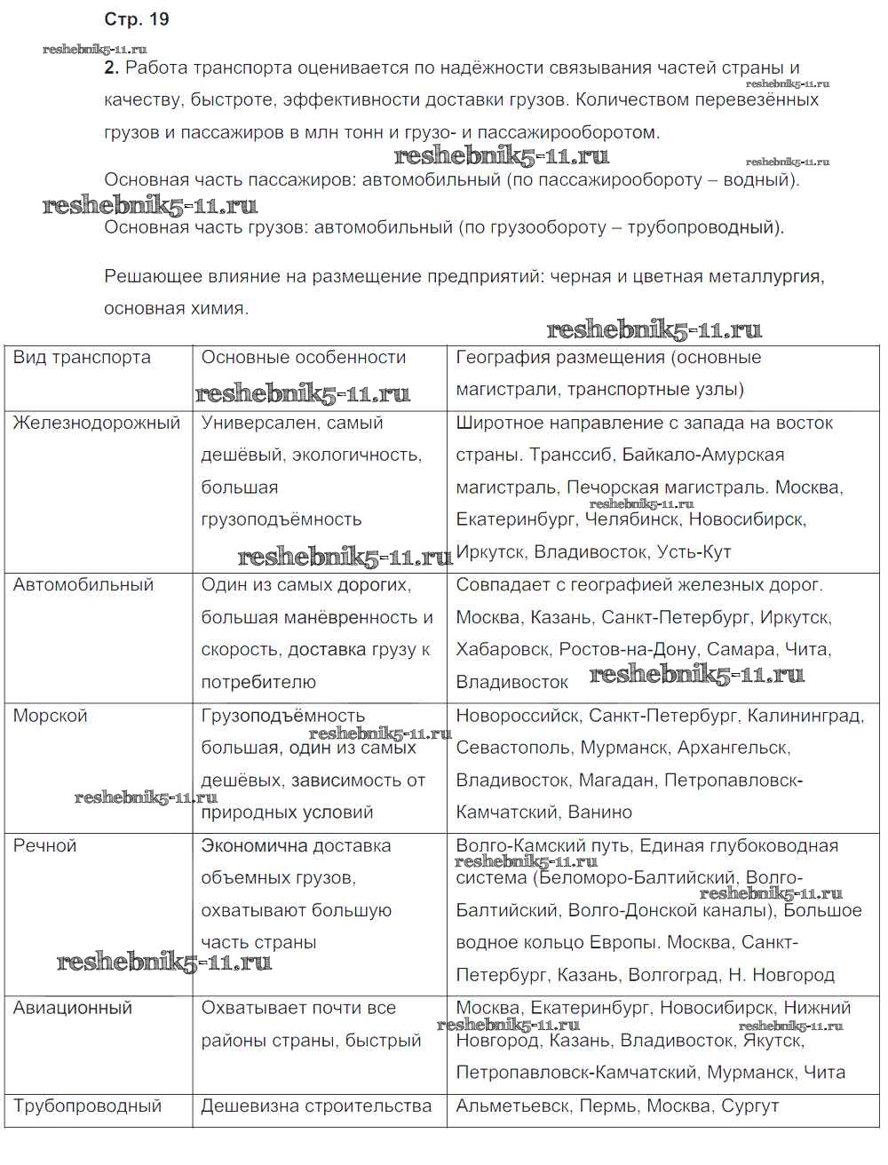 Готовая домашняя работа с ответами по Географии за 9 класс Баринова, Суслов Рабочая тетрадь с контурными картами УМК Экзамен 2019 ФГОС - Страницы тетради 19