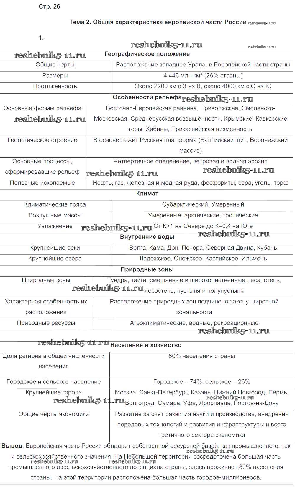 Готовая домашняя работа с ответами по Географии за 9 класс Баринова, Суслов Рабочая тетрадь с контурными картами УМК Экзамен 2019 ФГОС - Страницы тетради 26