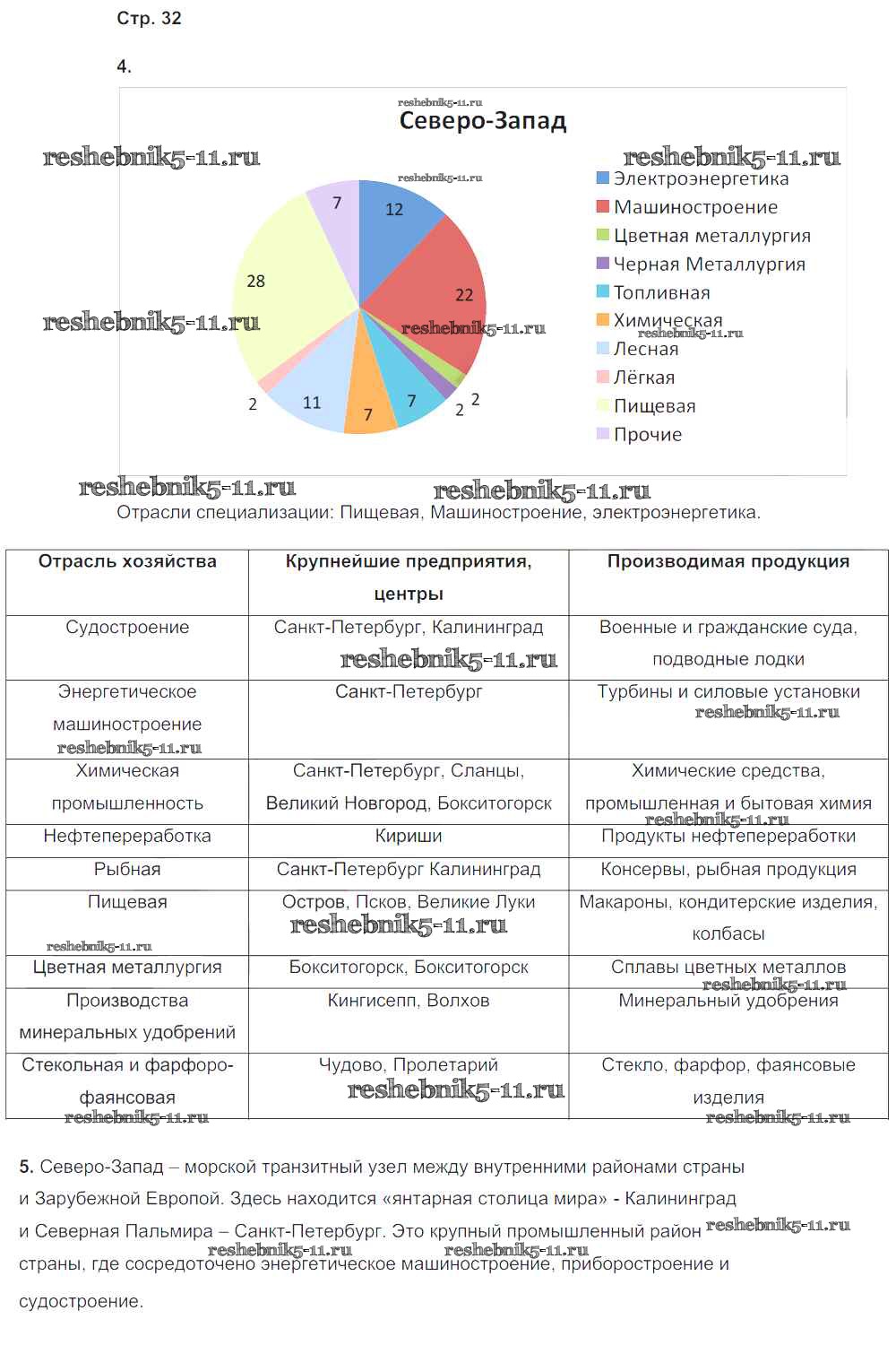 Готовая домашняя работа с ответами по Географии за 9 класс Баринова, Суслов Рабочая тетрадь с контурными картами УМК Экзамен 2019 ФГОС - Страницы тетради 32