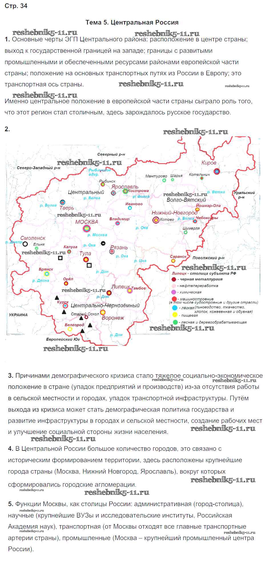 Готовая домашняя работа с ответами по Географии за 9 класс Баринова, Суслов Рабочая тетрадь с контурными картами УМК Экзамен 2019 ФГОС - Страницы тетради 34
