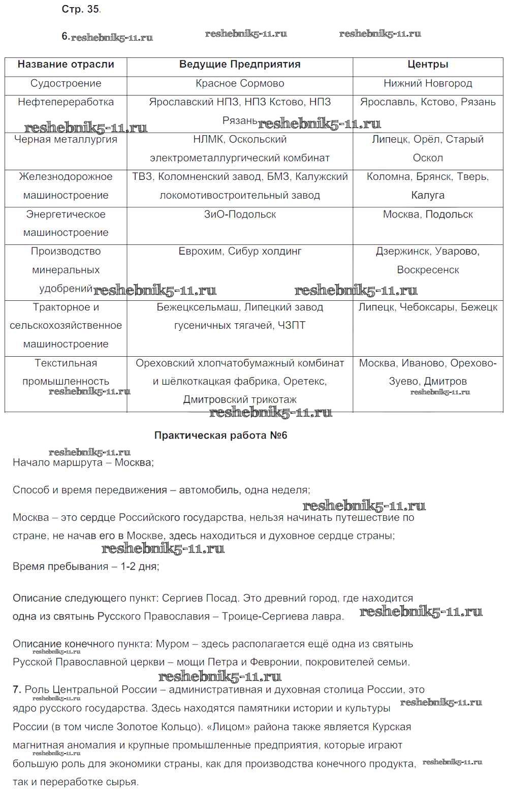 Готовая домашняя работа с ответами по Географии за 9 класс Баринова, Суслов Рабочая тетрадь с контурными картами УМК Экзамен 2019 ФГОС - Страницы тетради 35