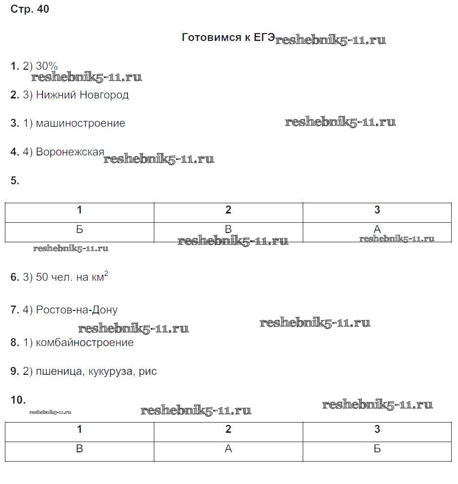 Готовая домашняя работа с ответами по Географии за 9 класс Баринова, Суслов Рабочая тетрадь с контурными картами УМК Экзамен 2019 ФГОС - Страницы тетради 40