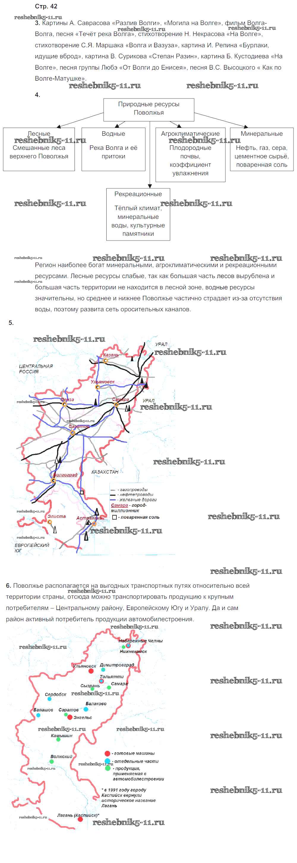 Готовая домашняя работа с ответами по Географии за 9 класс Баринова, Суслов Рабочая тетрадь с контурными картами УМК Экзамен 2019 ФГОС - Страницы тетради 42