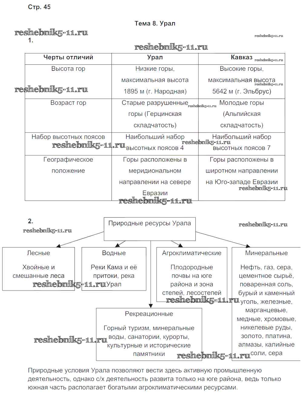 Готовая домашняя работа с ответами по Географии за 9 класс Баринова, Суслов Рабочая тетрадь с контурными картами УМК Экзамен 2019 ФГОС - Страницы тетради 45
