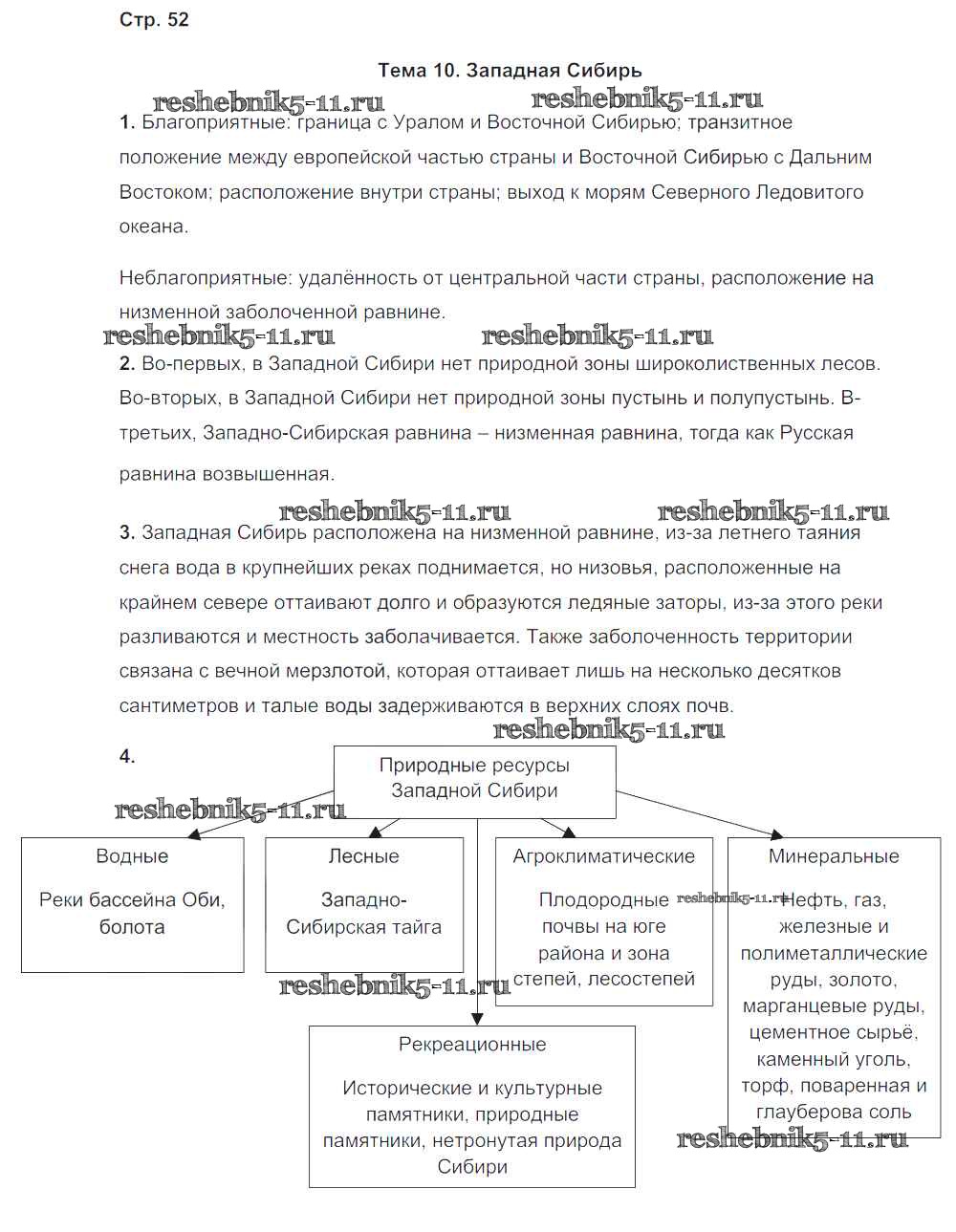 Готовая домашняя работа с ответами по Географии за 9 класс Баринова, Суслов Рабочая тетрадь с контурными картами УМК Экзамен 2019 ФГОС - Страницы тетради 52