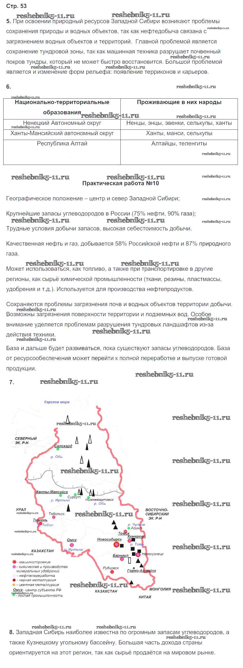 Готовая домашняя работа с ответами по Географии за 9 класс Баринова, Суслов Рабочая тетрадь с контурными картами УМК Экзамен 2019 ФГОС - Страницы тетради 53