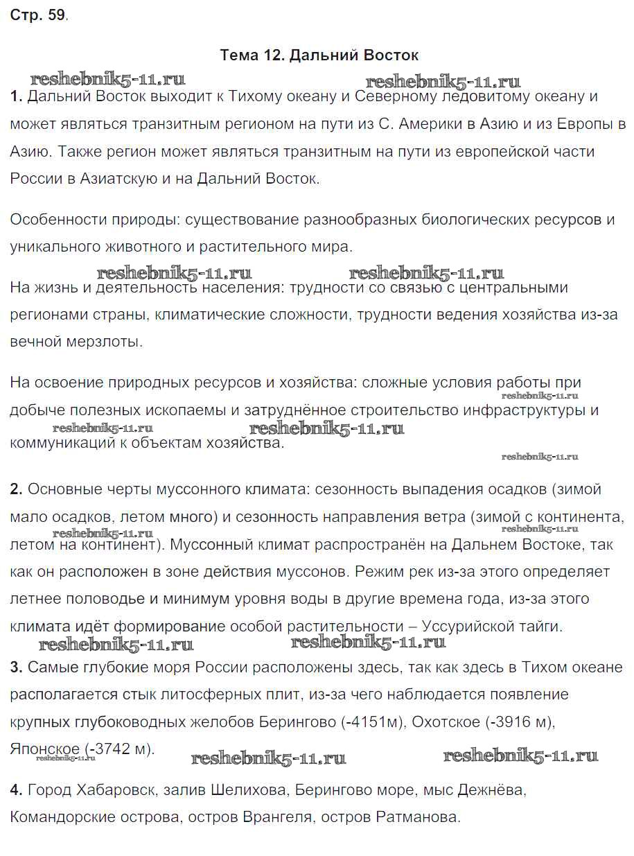 Готовая домашняя работа с ответами по Географии за 9 класс Баринова, Суслов Рабочая тетрадь с контурными картами УМК Экзамен 2019 ФГОС - Страницы тетради 59