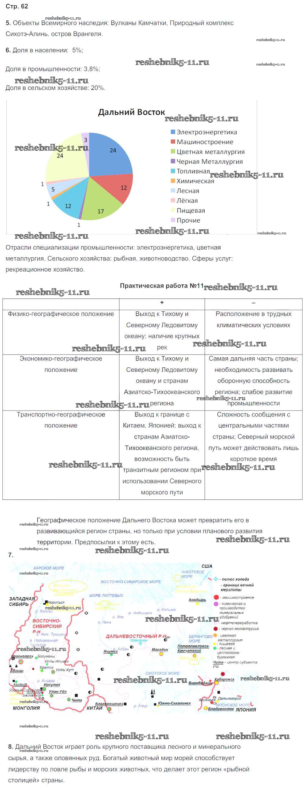 Готовая домашняя работа с ответами по Географии за 9 класс Баринова, Суслов Рабочая тетрадь с контурными картами УМК Экзамен 2019 ФГОС - Страницы тетради 62