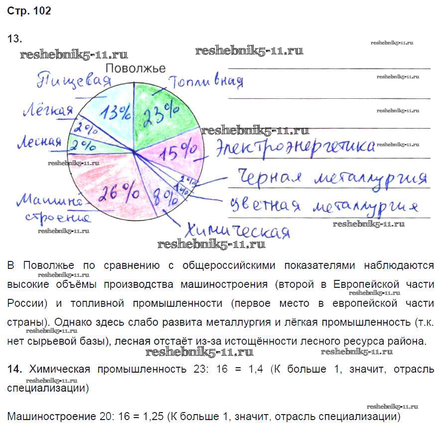 Готовая домашняя работа с ответами по Географии за 9 класс Баринова, Дронов Рабочая тетрадь Вертикаль Дрофа 2016 ФГОС - Страницы 102