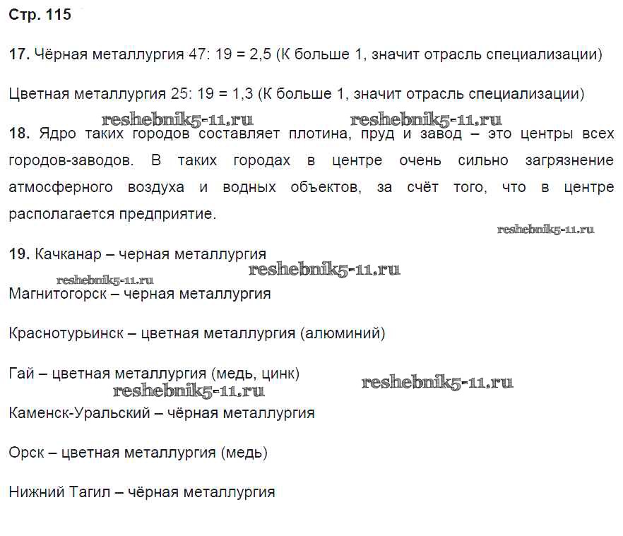 Готовая домашняя работа с ответами по Географии за 9 класс Баринова, Дронов Рабочая тетрадь Вертикаль Дрофа 2016 ФГОС - Страницы 115