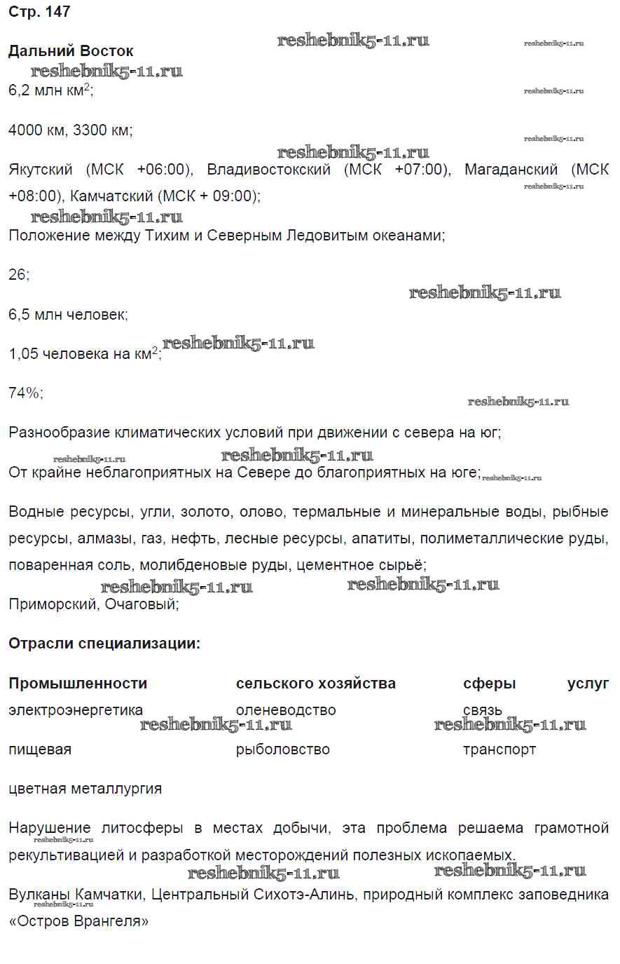 Готовая домашняя работа с ответами по Географии за 9 класс Баринова, Дронов Рабочая тетрадь Вертикаль Дрофа 2016 ФГОС - Страницы 147