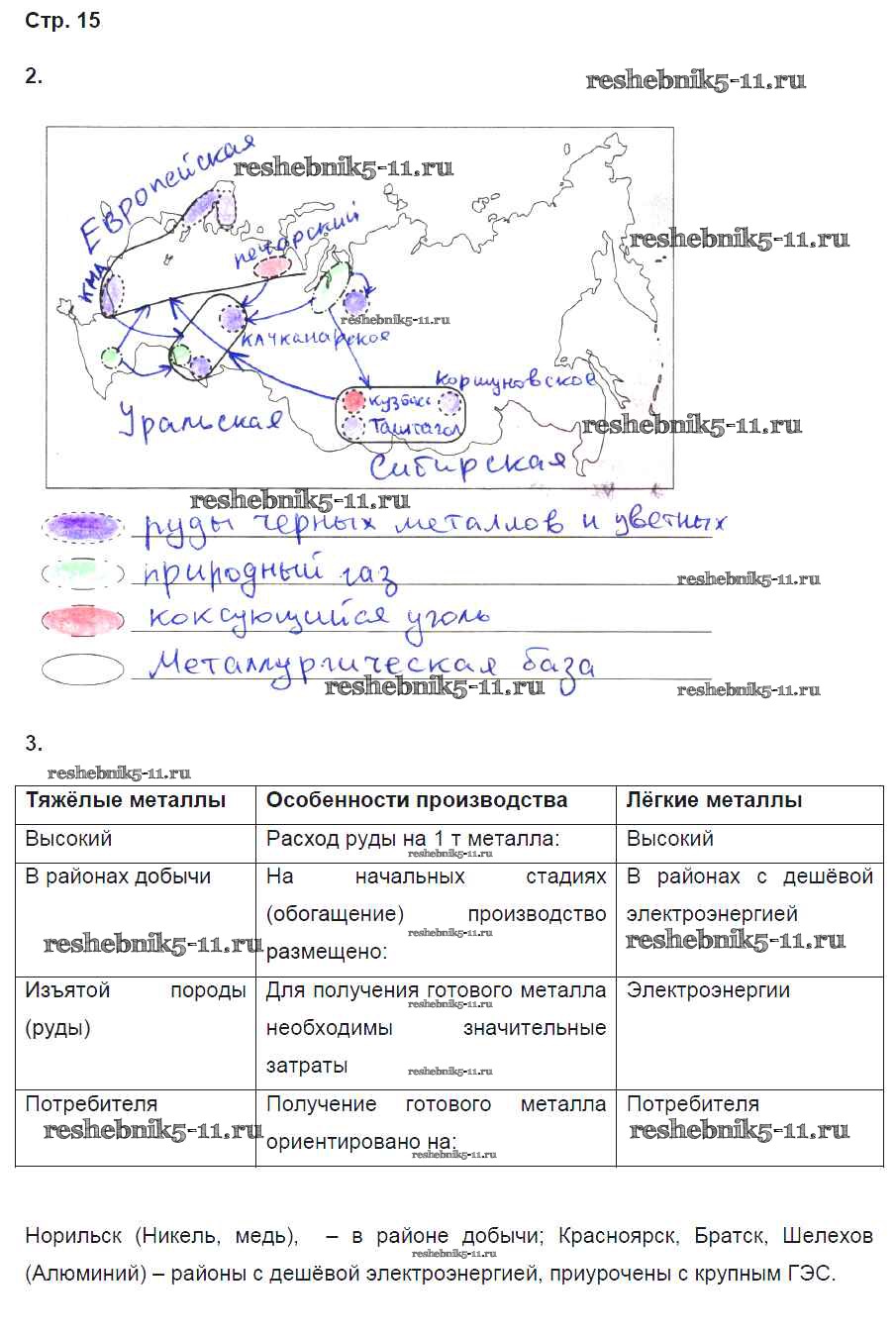 Готовая домашняя работа с ответами по Географии за 9 класс Баринова, Дронов Рабочая тетрадь Вертикаль Дрофа 2016 ФГОС - Страницы 15