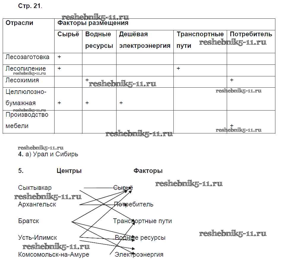 Готовая домашняя работа с ответами по Географии за 9 класс Баринова, Дронов Рабочая тетрадь Вертикаль Дрофа 2016 ФГОС - Страницы 21
