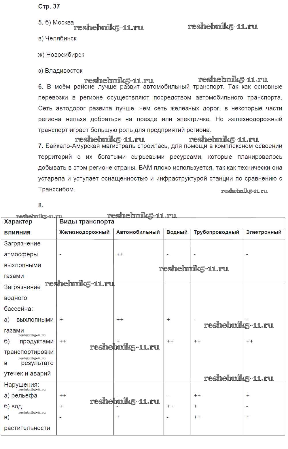 Готовая домашняя работа с ответами по Географии за 9 класс Баринова, Дронов Рабочая тетрадь Вертикаль Дрофа 2016 ФГОС - Страницы 37